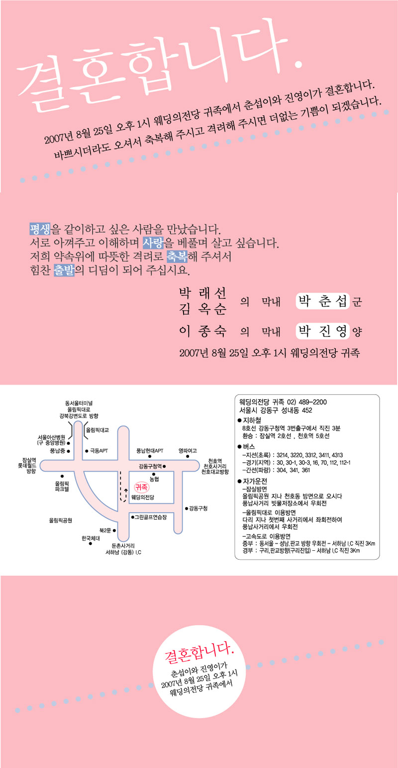 축하합니다.. 행복힌 결혼 생활 하시길 바랍니다..