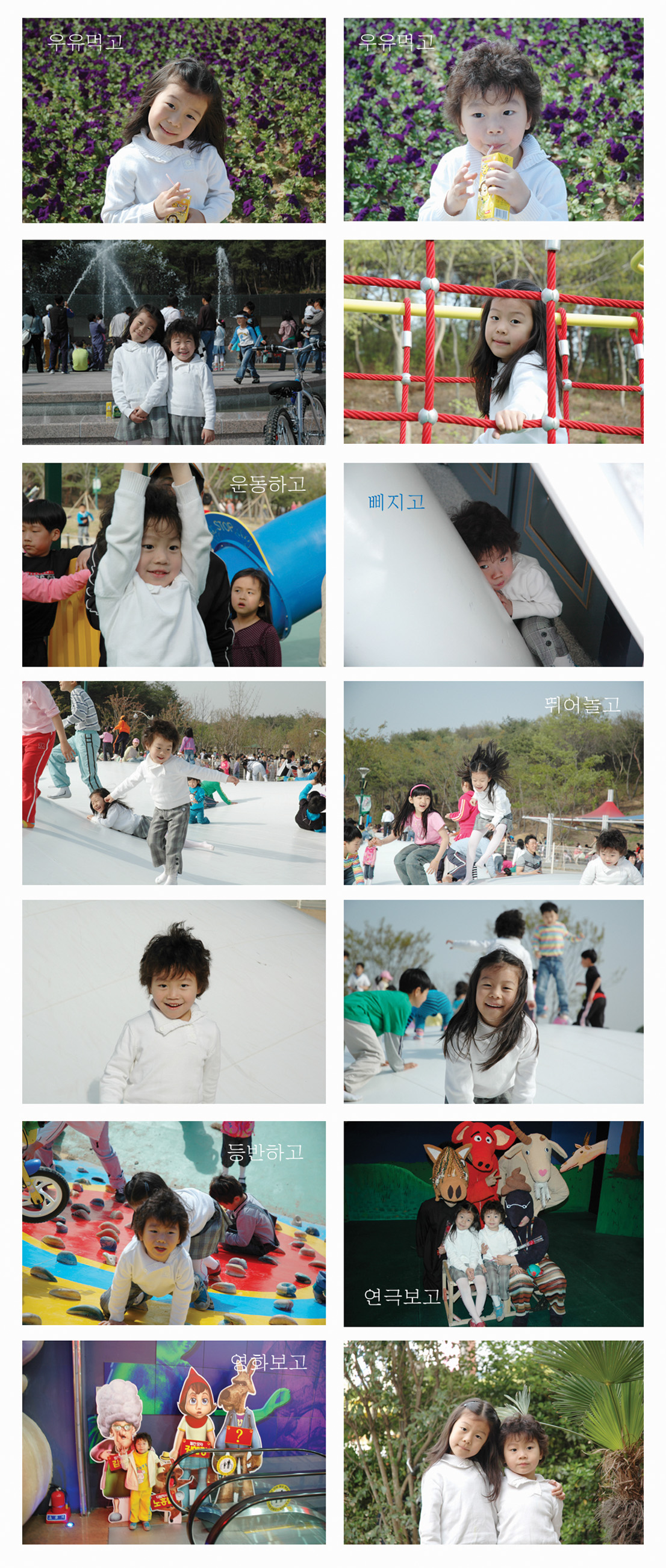 어제 영화보고 오늘 연극보고 대공원에서 신나게 놀고 삐지고 우유먹고 운동하고...