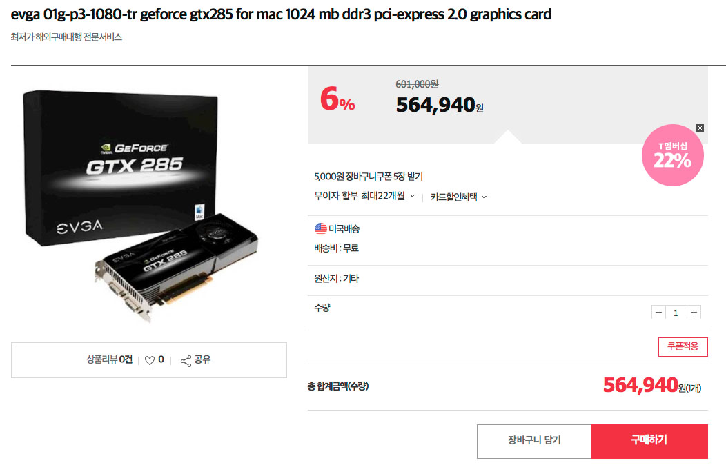 [판매완료] 애플 정품 Nvidia GTX285 그래픽카드