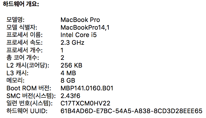 2017신형 MacBook Pro 레티나 13인치 스페이스그레이입니다.(논터치바)