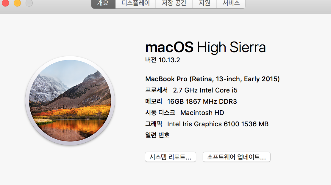 1. 물품명 : 맥프레 13인치 2015 Early(제품 사양: CPU: i5 RAM: 16gb SSD용량: 256gb)