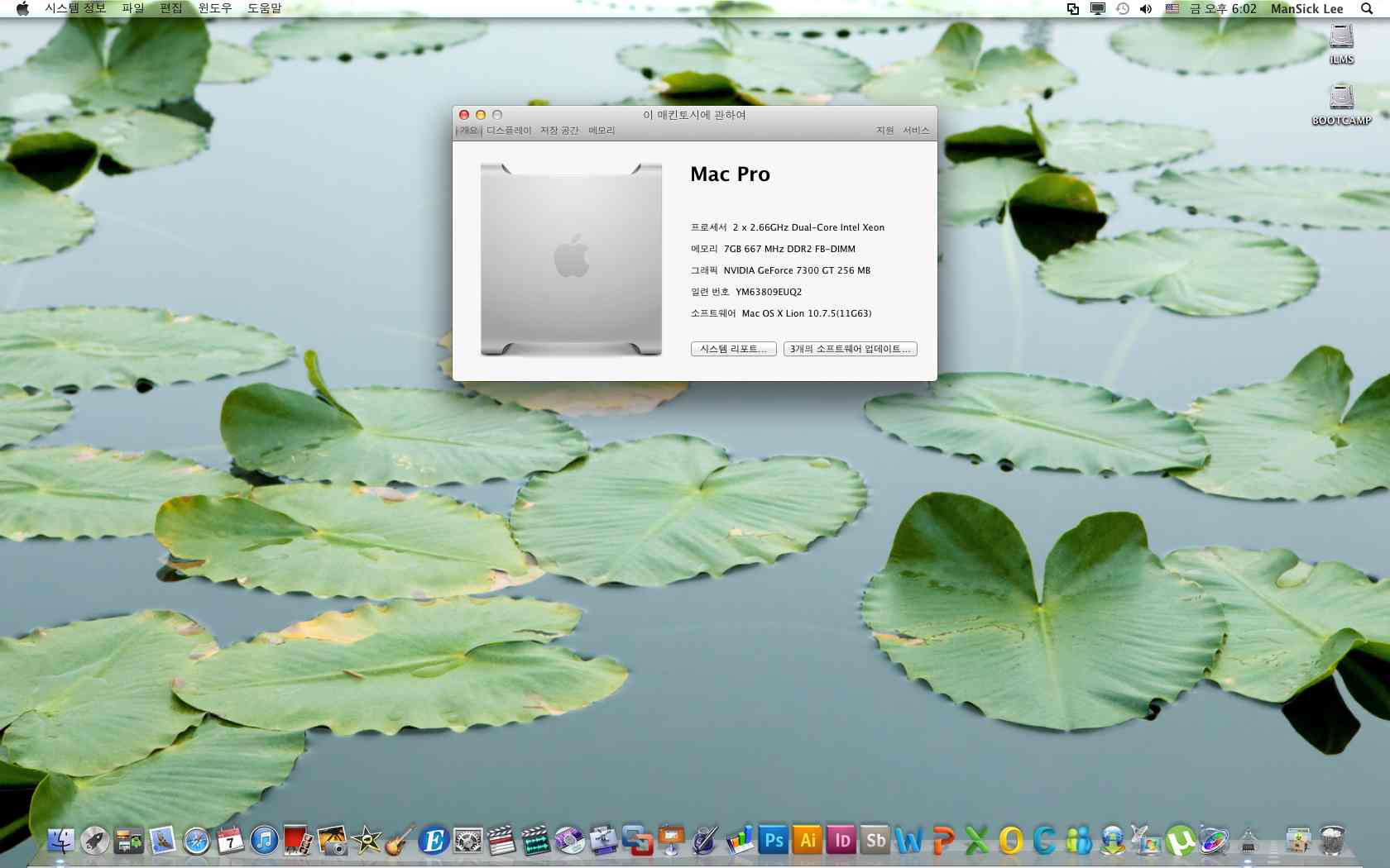 os 는 osx 10.7.5/ windows 8.1 설치되어 있습니다. 나머지 프로그램은 바탕 화면 사진으로 확인 하세요