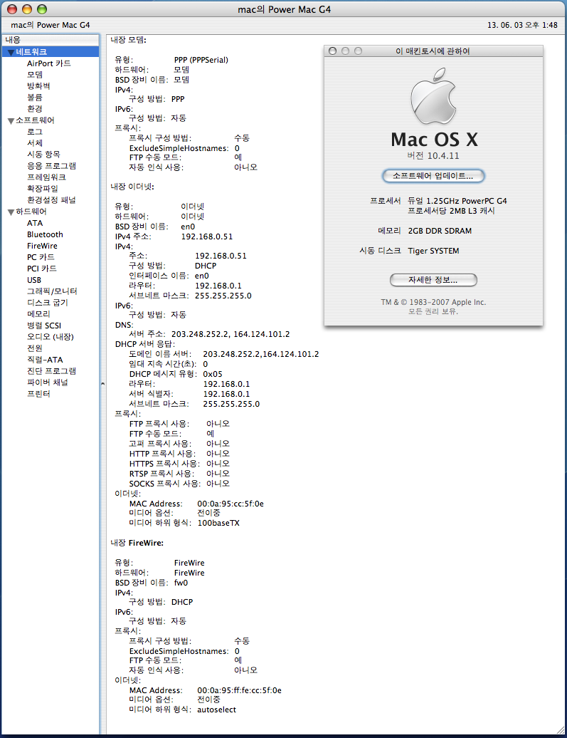 Mac OS X 10.4.11 과 9.22 개별하드에 별도로 부팅 가능합니다.