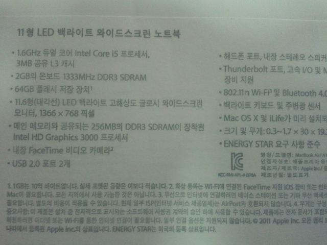 2011 최신형 맥북에어 11인치 기본형 팝니다 MC966KH/A