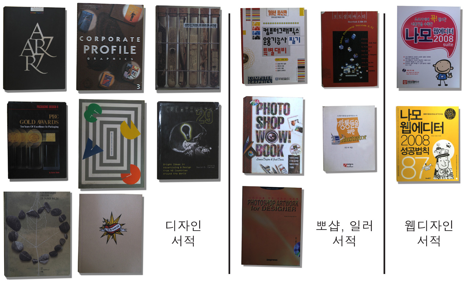 디자인 서적과 포토샵, 일러스트 및 웹디자인용 나모웹에디터입니다.
