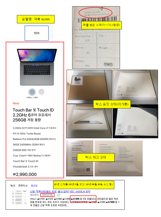 이번에 신제품 출시된 올해 18'  8월형 맥북 A1990모델 팝니다.