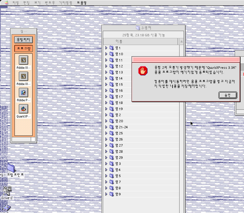 666바이러스나 한글시스템 자체에 문제 또한 쿽프로그램을 정보입수해서 사용메모리를 충분이 올려주셔야 됩니다.