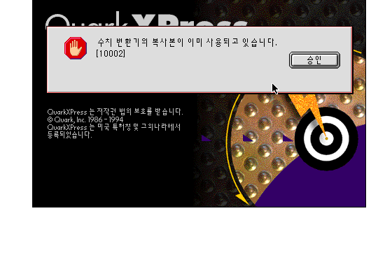 복사본을 사용하셔서 그렇습니다. 일단 해당 컴퓨터의 애플톡을 비활성으로 놓으신후. 다시실행하시면 문제없이 될껍니다. 그렇게해서 쿼크 실행이 완료되면 애플톡을 활성화 시키면 됩니다.
