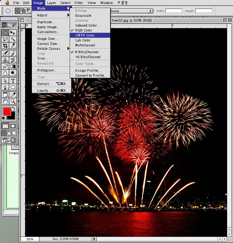 포토샵에서 이미지 여시구 이미지 모드 에서 CMYK 선택하시면 됩니다.