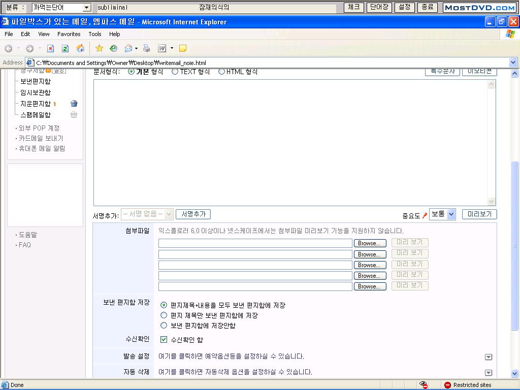 여친 컴에 나온 엠파스 메일쓰기 페이지랑 제 엠파스 메일 쓰기 페이지랑