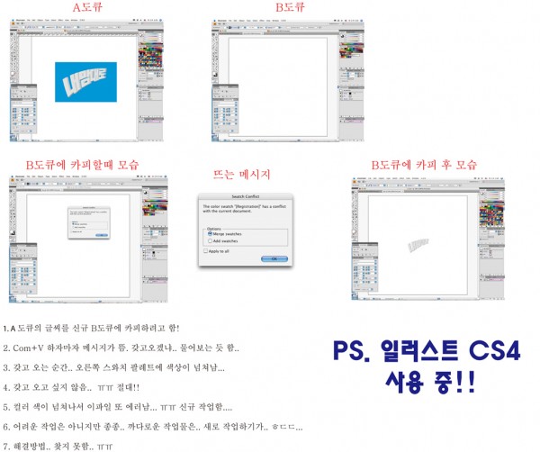 문제는.. 스와치팔레트에 색이 따라오면서 도큐가 계속 에러가나고.. 저장이 안되고. 기타 등등의 문제가 발생합니다..