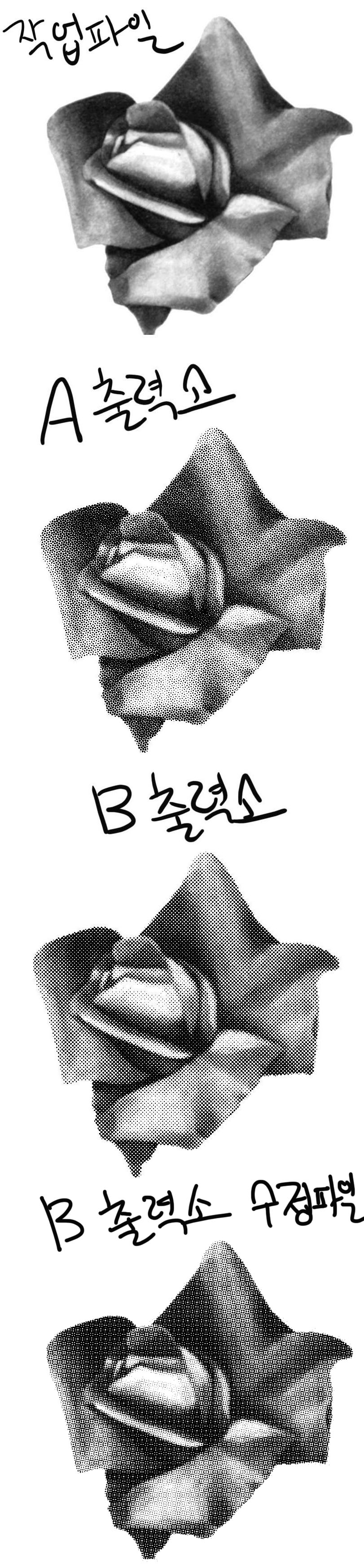 여러고수님들 A출력실에서 뽑아준 망점모양은 포토샵에서 어떻게 변화해야되는건지 알려주세요~~