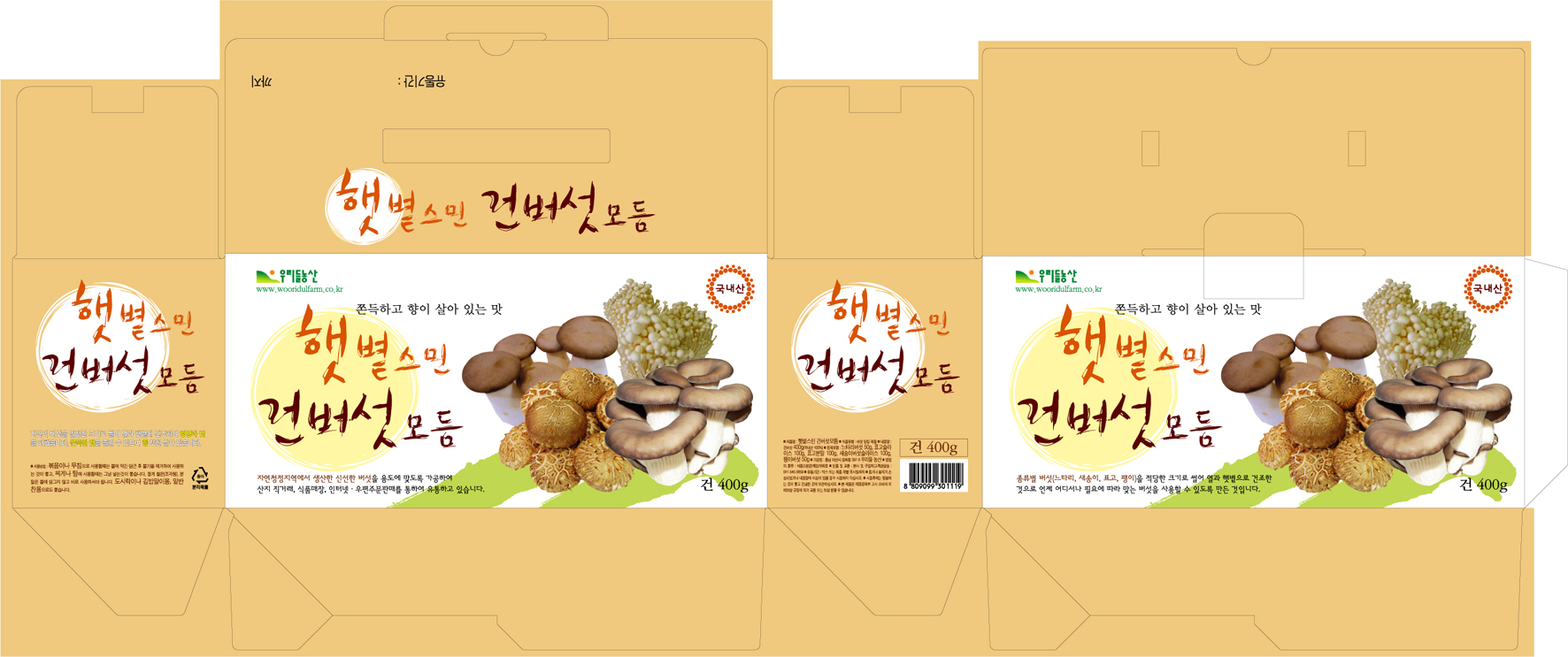 짝짝!! 깔끔하니,,,좋네요,,, 다른건 잘모르겠고,,, 타이틀이랑,,,이미지컷이,,,일직선에,,,놓여져 있어,,,재미가 쪼매 엄는듯,,, 버섯이미지를,,,우측하단으로,,,살짝 감추고,,,타이틀은,,,살짝,,,줄여주심,,, 뚜껑부분도,,,타이틀만,,,크게 들어가있으니,,,재미가,,,덜한듯,,, 그리고,,,밑부분,,,빼다를 풀로 깔지말고,,, 장쪽,,,폭쪽,,,각각,,,10mmm빼주심이,,, 박스가공시,,,정확하게,,,도무송처리 안됩니다,,, 패키지디자인은,,,인쇄를 알고,,,가공을 알면,,,좀더 쉽답니다,,,^0^