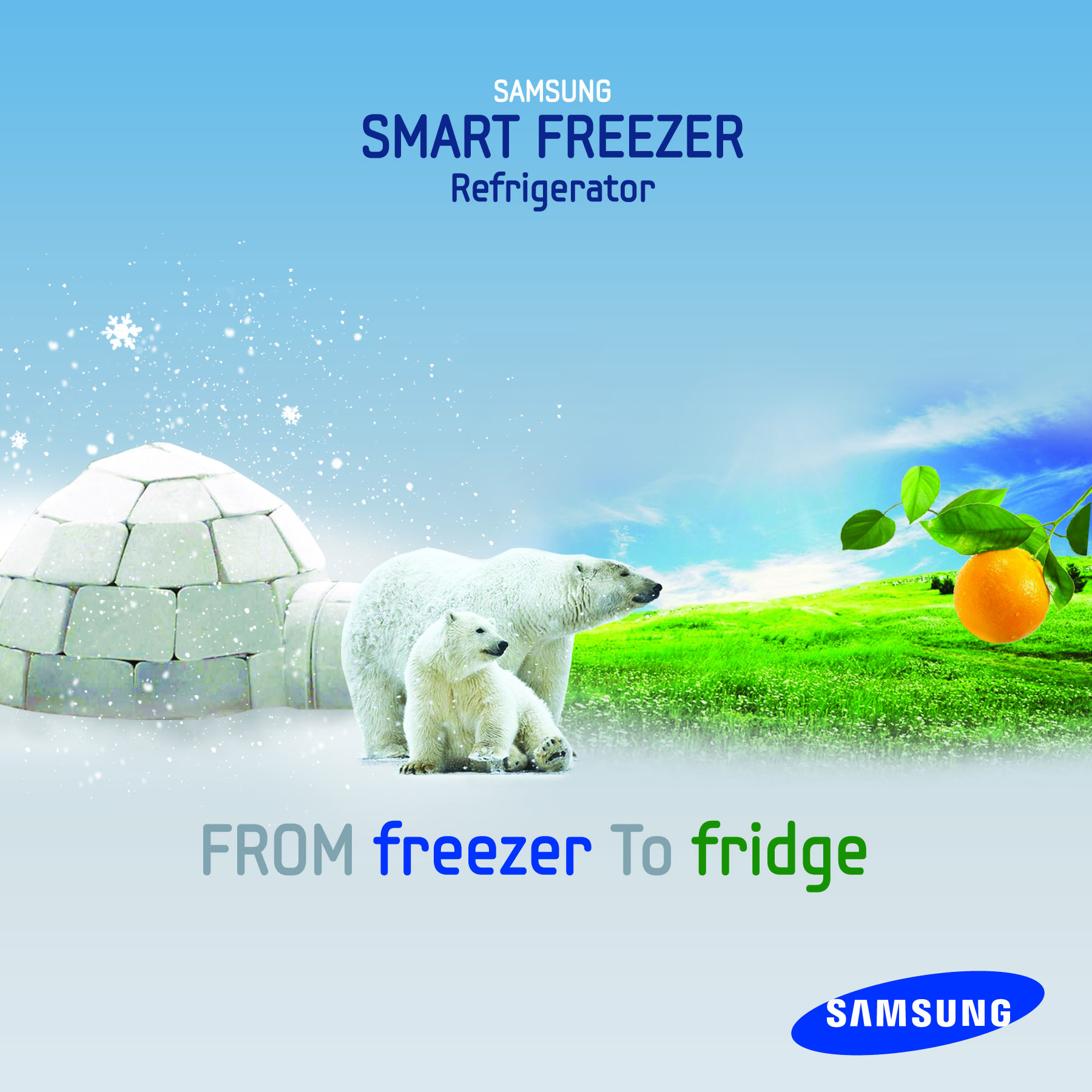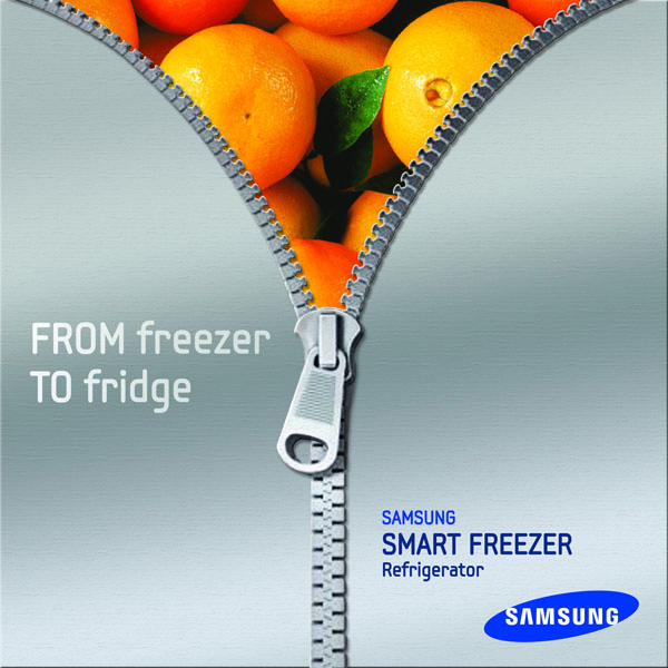 냉동고를 냉장고로도 사용할 수 있다는 것을 보여주는 수출용 디자인입니다.