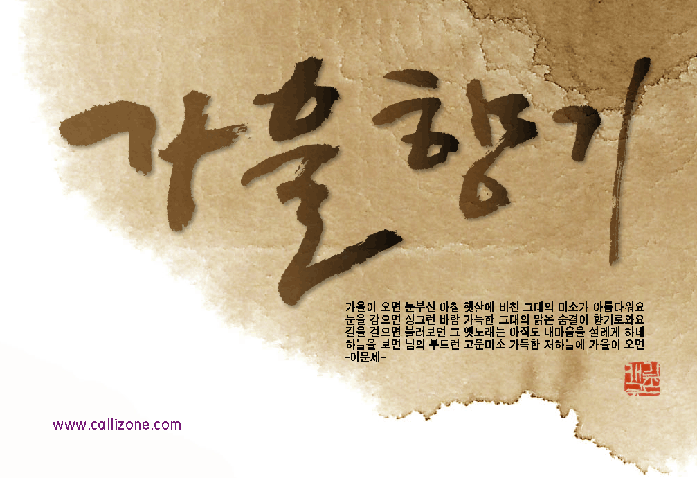 [직접쓴 캘리} 가을향기 callizone 일반 1 8970 2007.10.02 14:07 http://www.callizone.com/home/index.php + 541 가을이 익어가고 있습니다. 가을을 음미하면서 한번 만들어 보았습니다. 회원님들 감기조심 하세요^^