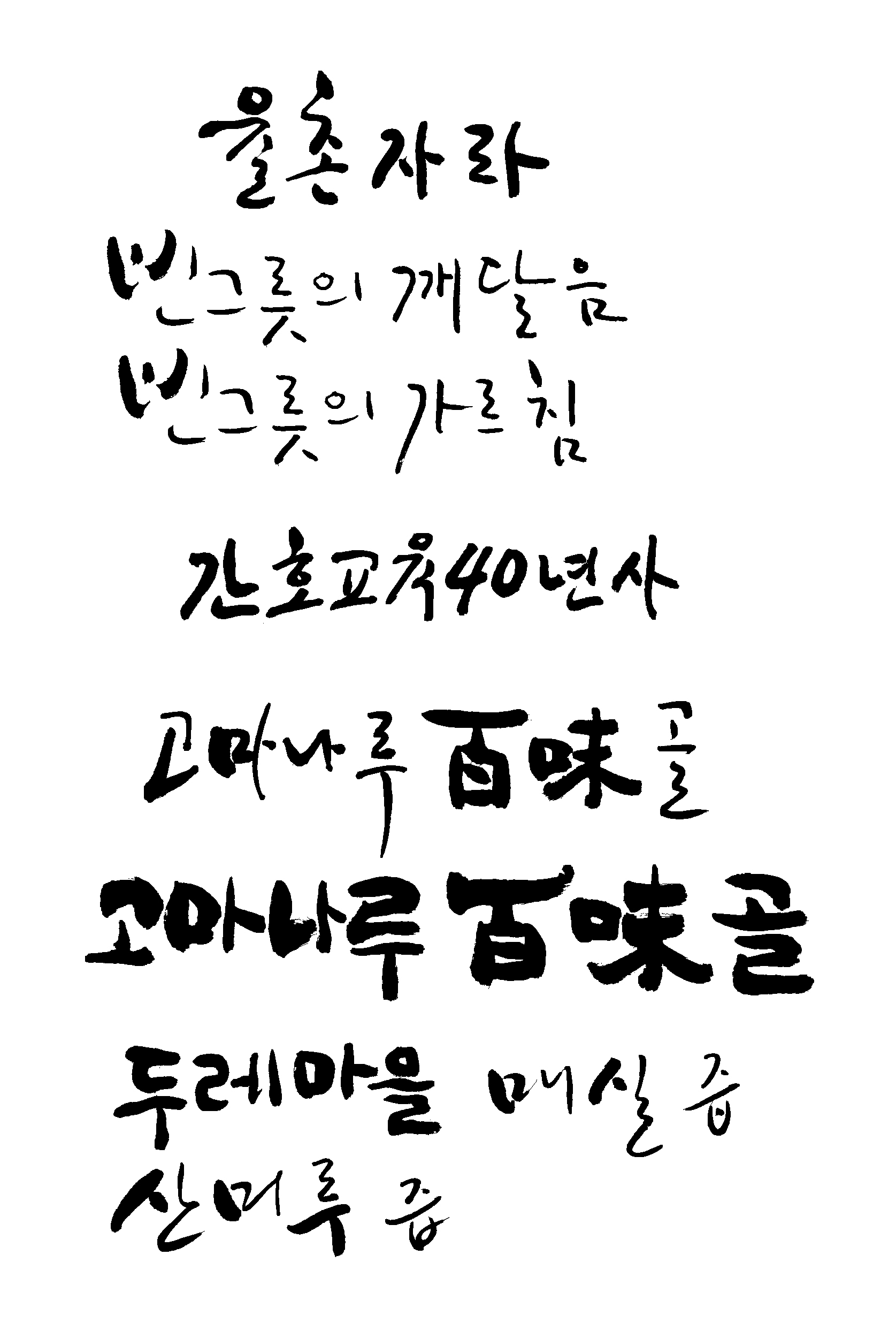 캘리모둠 예인 일반 5 7116 2009.02.21 00:21 의뢰하신 캘리를 모아 봤어요. 그리고 어디에 사용하것인지, 언제까지 필요 하신지, 원하시는 캘리 스타일은요? ( 참고 할 캘리그래피 샘플을 같이 올려 주시면 더 좋겠죠 ) 그리고 작업된 자료를 올려주시면 다음 작업에 도움이 많이 될듯 싶네요.