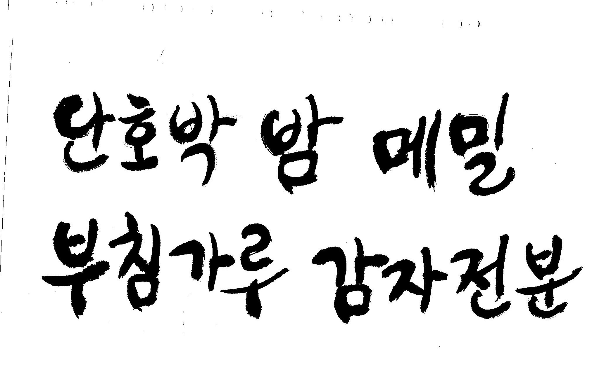 반갑습니다.~캘리 부탁드릴께요~ 김철호 일반 0 5622 2009.02.13 01:00 > > 안녕하세요~ 철호님~ > 항상 좋은자료~ 감사합니다. > 이번에 또 몇가지 부탁드려도 될지 모르겠어요~ > 내용은 단호박,밤,메밀,부침가루 감자전분,감자가루 입니다. > 좀 많죠~^^;; > 식품포장지쪽으로 들어갈 내용입니다. > 항상 부탁만 드리네요~ > 참 전에 올려주신건 곧 제품으로 나올 예정이예요~ > 나오면 찍어서 보내드릴께요~ > 항상 감사합니다.^^ >