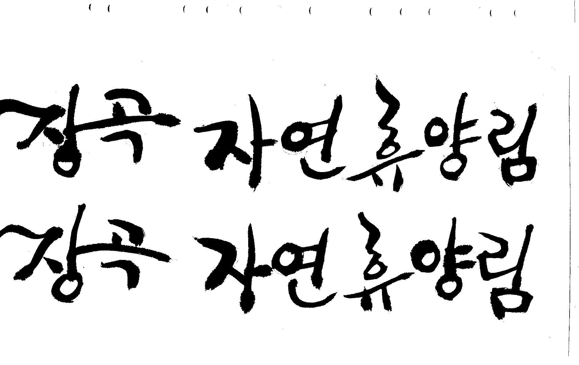 캘리 부탁드려요~ 김철호 일반 0 8123 2008.12.25 23:25 > > > > > 홈페이지 시안 작업중인데. > > 메인으로 들어가는 폰트를 명조체로 넣었는데 좀 딱딱한 느낌이 들어 > > 캘리로 쓰면 느낌이 좋을것 같아서 부탁드리게 됐습니다. > > [장곡 자연휴양림] 이구요. > > 홈페이지 시안으로 채택되면 결과물 보여드릴께요^^ > > 추운겨울 감기 조심하시고 > > 즐거운 크리스마스 되세요! > > > > 감사합니다.. > 유용하게 쓰시길... > 글자수가 많아서 스캔이 잘렸네요.. > 맞춰서 편집하세요.. >
