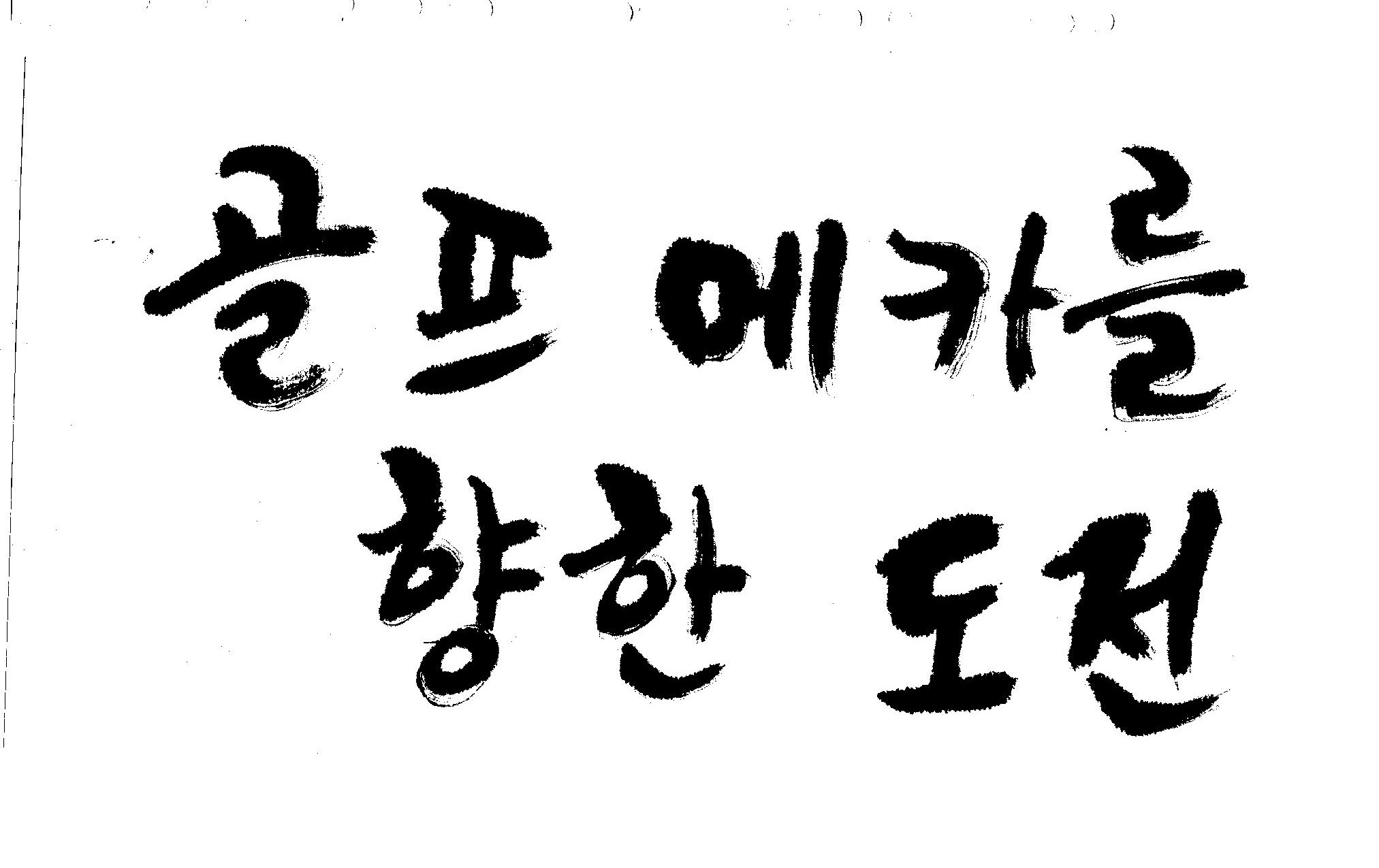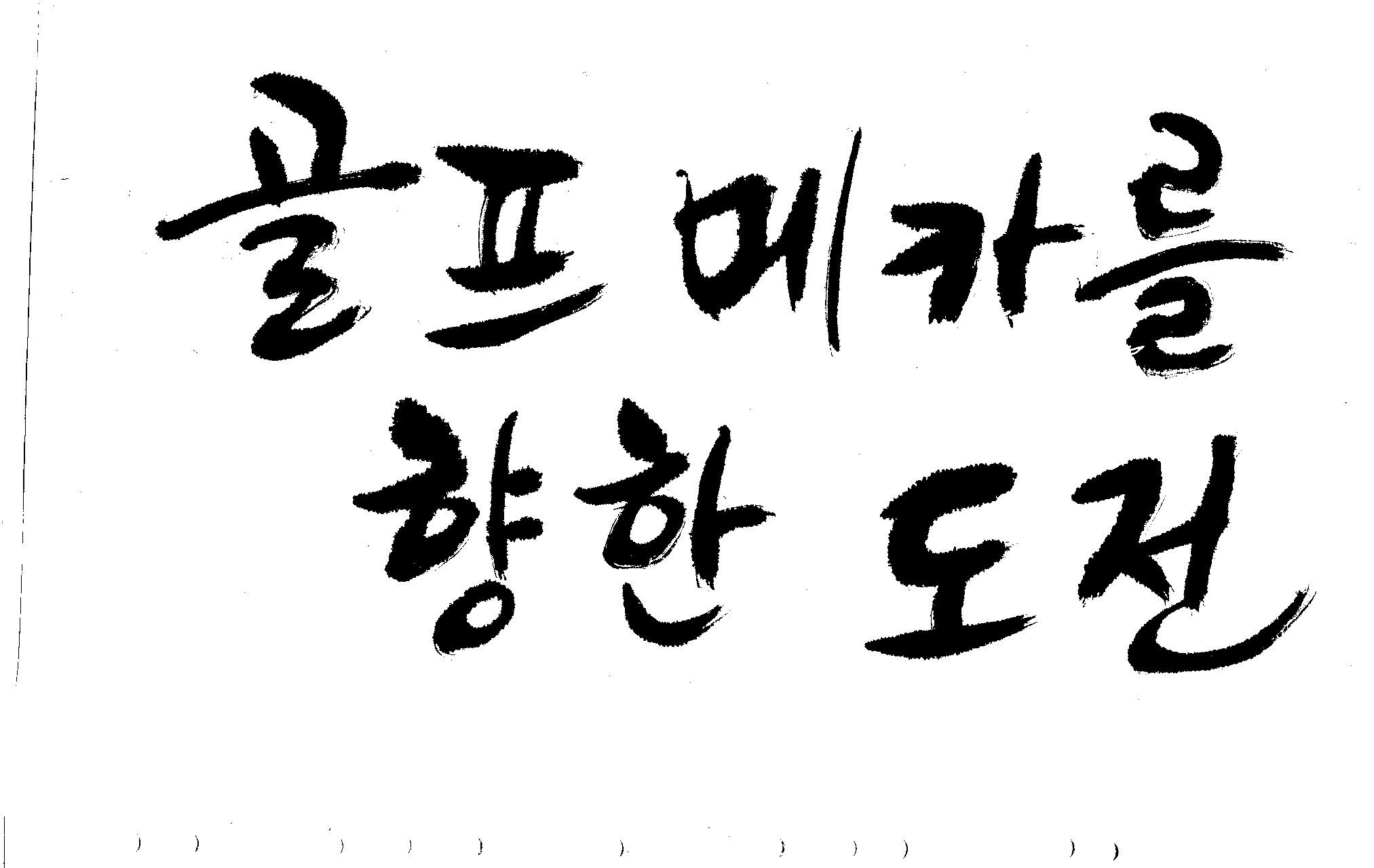 우경의 행복한 캘리세상-골프메카 김철호 일반 0 8565 2009.07.18 10:25 리듬감을 최대한 살리고 ㅡ 스포츠의 운동감과 밝음 기교섞인 획을 배제--일반적인 느낌 굵기변화를 통하여 도전 낱말을 강조 스타일은 비슷하지만 ...한 사람이 썼으니까 ㅎㅎㅎ 서로 다른 글꼴을 올린 것은... 비교하여 보시고... 편집자에게 선택권을 주는 것입니다