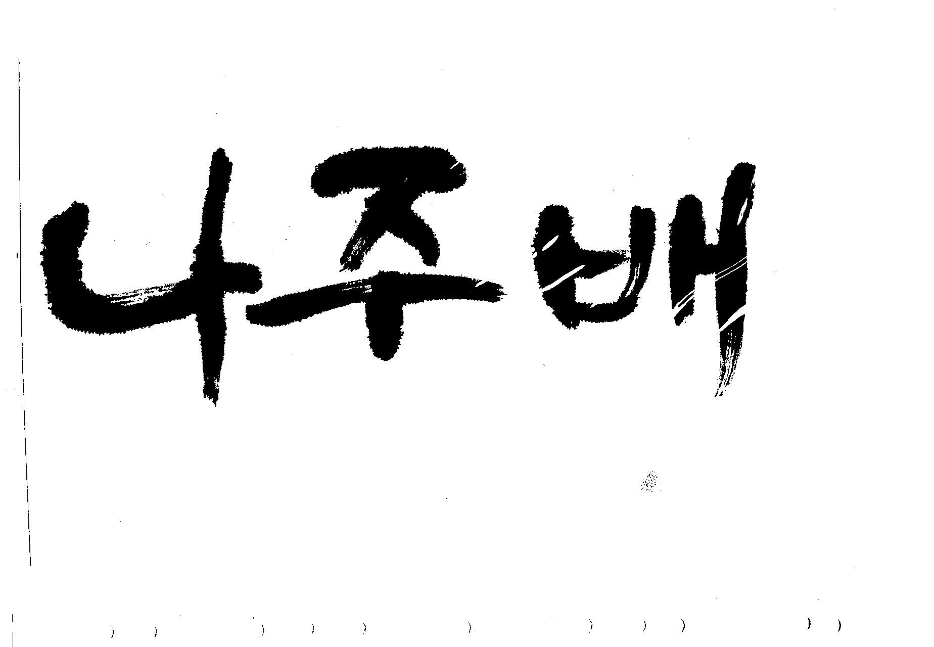 캘리부탁드려도 될까요? >나주배 김철호 일반 0 12153 2009.07.18 10:54 > > > > > 추석용 배 패키지에 쓰일 > > > > <나주 배> 캘리 부탁드려도 될까요? > > > > 화선지 깔고 먹으로 써봤는데 > > > > 아무리 아무리 써도 허접하네요.. > > > > 도움주시면 감사하겠습니다.^---^: > > > 한 글자만 쓰일 줄 알지만 > 한 글자 마져도 버려 질 수도 있지만 > 나주배의 시원한 단맛을 생각하면 썼습니다. >